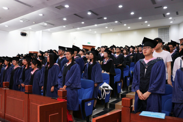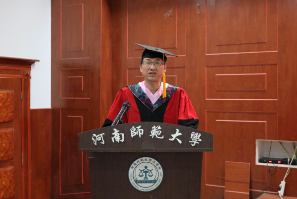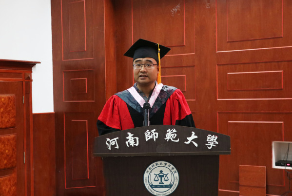 典礼在庄严的国歌声中拉开帷幕。王鹏祥院长代表学院向圆满完成学业的毕业生表示最热烈的祝贺,向辛勤耕耘的老师们表示最真挚的敬意。他向即将踏上新征程的毕业生们提出三点希冀:一是希望同学们做热爱生活、懂得感恩的人。感恩,是中华民族的优良传统,也是一个正直的人的起码品德。要以一颗感恩之心回报社会,善待所有的亲人,所有的师者,所有的同行,并把他们作为自己学习和景仰的对象,善于从他们身上汲取知识之外的能量和优长。二是希望同学们做信念执着、坚守法律底线的人。现实的社会需要我们每个人怀抱理想,将自身抱负与职责使命紧密相连,用青春和奉献,传承法治精神,推动法治进展。希望同学们在未来生活中能够不畏强权,忠诚法律,修炼精良的法律技术,磨砺强大的慈悲之心,用最朴实的态度捍卫法律的尊严。三是希望同学们直面挫折,做自立自强的人。人生并不总是鲜花美酒、激情洋溢,悲伤、失落、失败是世间的平常事,但无论遇到什么样的困难和挑战,都要以“胜不骄、败不馁”的精神,锐意进取,在锲而不舍、驰而不息的奋斗中,开阔新视野、增长新本领。