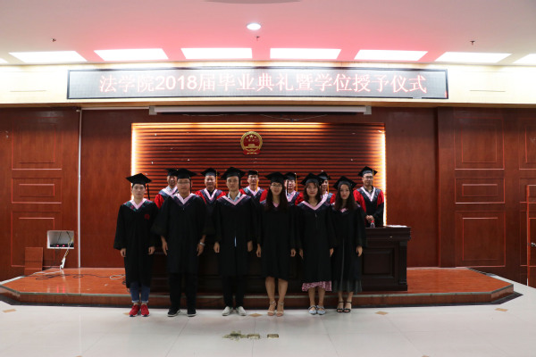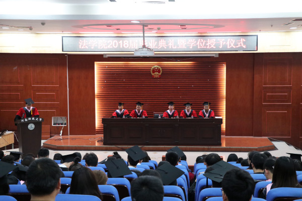 6月4日上午,法学院2018届毕业典礼暨学位授予仪式于东区模拟法庭举行。法学院党委书记任永利、院长王鹏祥、副院长韦留柱、副院长崔发明、教师代表胡光、各年级辅导员及2018届全体毕业生参加了此次毕业典礼。典礼由党委副书记葛照金主持。