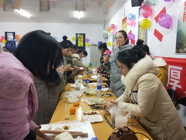 为了让各位同学身在学校,不乏家庭温暖,更好的照顾到同学们的思家情怀,12月22日下午,2017级法学一班全体同学在东校区门口天太菜馆举办冬至包饺子活动。活动开始前班委们细心安排,精心策划,合理组织。