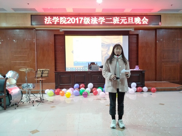 一元复始,万象更新。12月27日晚19:30,2017级法学二班全体同学欢聚模拟法庭,共庆即将到来的元旦佳节。本次元旦晚会由班委带头策划举办。