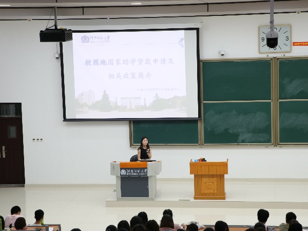 会议伊始,马淑明对本次主题会议的活动流程、背景、目的和要求进行介绍并宣布会议正式开始。首先,2016级兼职辅导员褚畅用PPT辅助介绍了高等学校学生经济资助政策,从资助范围、资助标准、申请条件、申请时间、发放时间这五个方面依次进行了详细地讲解。接着,她系统地讲述了校园地信用助学贷款的还款流程及相关注意事项。随后,同学们观看了中央电视台主题贷款视频,马淑明教育同学们提高安全防范意识,树立理性消费观念,自觉远离网络贷款行为,规避盲目消费风险,提醒学生重视个人身份信息保密,谨防身份信息被不法分子利用,在不知情的情况下发生网络借贷行为。会议的最后,马淑明对与会学生进行了诚信教育,仔细讲解了及时还款的途径、方法,并从确保国家助学贷款工作持续健康开展的高度要求学生信守承诺,及时还款。
