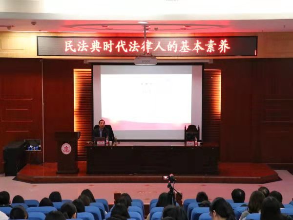 12月24日下午,郑州大学博士研究生导师田土城教授受邀于东区模拟法庭作关于“民法典时代法律人的基本素养”的主题学术讲座。近三百名学生聆听了此次讲座。