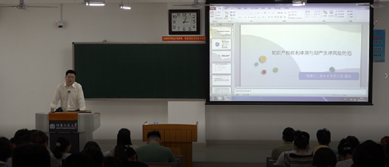 5月11日,法学院《法官实务》课程第二十三讲如期而至。新乡市中级人民法院民三庭副庭长翟晓法官以《知识产权权利冲突与知产法律风险防范》为题,为同学们带来了一节内容丰富、深入浅出的法官实务课程。