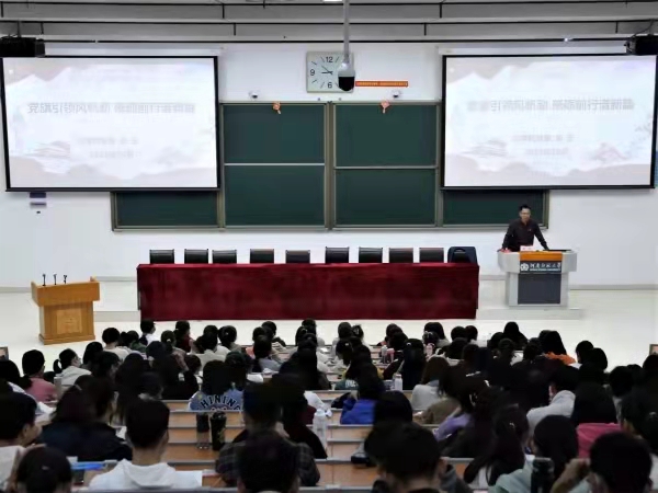 张壬书记从“制度优势,根本保证”、“铭记历史,坚定初心”、“大灾大难,淬炼担当”和“勤奋求知,砥砺青春”四个方面展开讲解。在“制度优势,根本保证”这一部分,张壬书记讲述了中国共产党百年间的发展历史,并鼓励学生们要把党的历史学习好、总结好,把党的经验传承好、发扬好。紧接着,他以近期“河南疫情防控”和“郑州7.20特大暴雨洪水”两件事情为例,系统地阐释了“坚持党的集中统一领导”、“密切联系群众”以及“集中力量办大事”三个方面的制度优势。在讲述“大灾大难,淬炼担当”时,张壬书记结合师大师生积极应对汛情的生动事迹,让在场学生们近距离地感受了灾难面前我校学子的优秀表现,他强调青年学生要把灾难当成教材,与祖国共成长。活动最后,他对在场学生提出了三点希望,鼓励学生们要“强信念,做新时代奋斗者”,“增本领,做新时代引领者”,“勇担当,做新时代奉献者”。