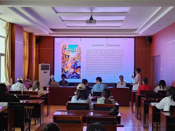 本次分享会分别在模拟法庭和崇法楼301室两个场地举行,2020级、2021级的同学以自由组队的形式参与活动。参与选手通过选择喜欢的英文电影、英文书籍、英文电视剧等内容以配音秀、PPT展示的形式进行风格迥异、内容多彩的分享。二号选手选取《傲慢与偏见》的片段,用惟妙惟肖、声情并茂的表演再现电影风采;八号选手另辟蹊径,采用现场配音的方式,通过精彩的表演将现场气氛推到了高潮。活动中选手们以认真的态度、丰沛的感情、饱满的热情对待此次比赛,为现场观众带来了一场视听盛宴。最后,评委老师针对选手的表现进行点评,选手们纷纷表示,通过本次活动激发了学习英语的兴趣,在小组合作、分享交流等过程中受益匪浅。