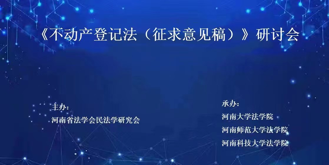 2022年11月27日上午,由河南省法学会民法学研究会主办,河南大学法学院(知识产权学院)、河南师范大学法学院(知识产权学院)、河南科技大学法学院(知识产权学院)承办的《不动产登记法(征求意见稿)》研讨会在线顺利召开。来自河南省高等院校、不动产登记主管部门和法律实务部门的人士参加了此次会议。研讨会分为五个阶段。