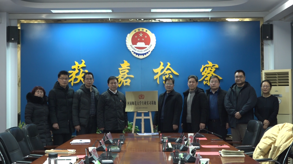 在获嘉县人民检察院,法学院一行参观了小荷青少年维权中心、审讯室、远程审讯室等处室。座谈会上,牛卫军指出,检校共建是需要专家学者和检察人员共同努力、实现合作共赢的系统性工程,要以“检校合作”为桥梁,共建检察机关与高等院校的深度融合模式。于庆生表示,将促进法学理论和司法实践的密切结合,实现双方人才培养共赢、理论实践共促、信息资源共享,希望双方在今后能够有更深层次的合作和探索,共同推动法学教育和检察工作的科学发展。会后,检校双方代表进行了签约,共同为“河南师范大学专业实习基地”揭牌。