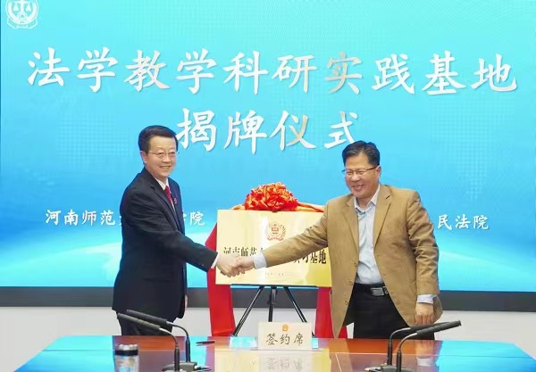 为加强院校合作,加快构建法学教学科研实践基地,深入推动司法实践与法学理论研究双向互动。3月23日,河南师范大学法学院与三门峡市中级人民法院卓越法治人才联合培养合作暨法学教学科研实践基地签约揭牌仪式在三门峡市中院举行。河南师范大学法学院院长于庆生、副院长胡光、郭少飞,三门峡市中级人民法院党组书记、院长周东方等同志出席本次活动。