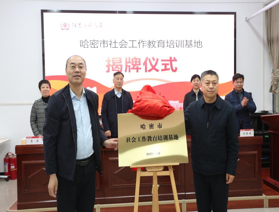 开班仪式上,吴富生与社会学院院长王君健共同签署战略合作协议,郭红迎与吴富生为“哈密市社会工作教育培训基地”揭牌,标志着校地合作迈入新阶段。