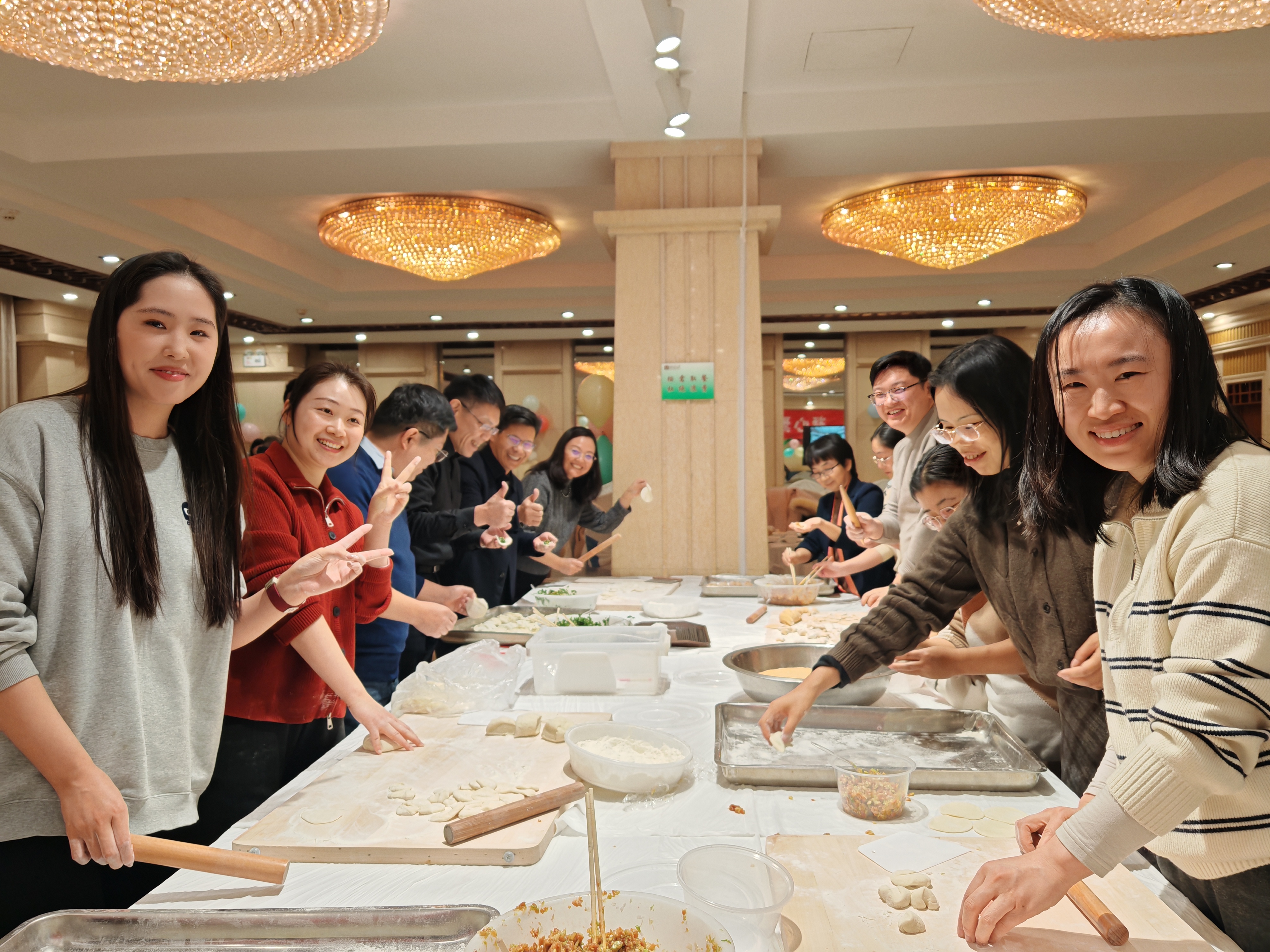 活动现场温馨而热烈。教师们纷纷提笔,在彩笺上写下对学院与个人未来的美好祝愿与发展愿景。随后的包饺子环节,大家围坐在一起,揉面、擀皮、填馅、捏合,默契配合中流淌着浓浓的情谊,热腾腾的饺子散发出“家”的温暖与团圆的味道。“击鼓传花”与抽奖互动环节更是将气氛推向高潮,老师们踊跃参与,即兴表演精彩不断,现场掌声与欢笑声此起彼伏,洋溢着一片融洽喜悦。