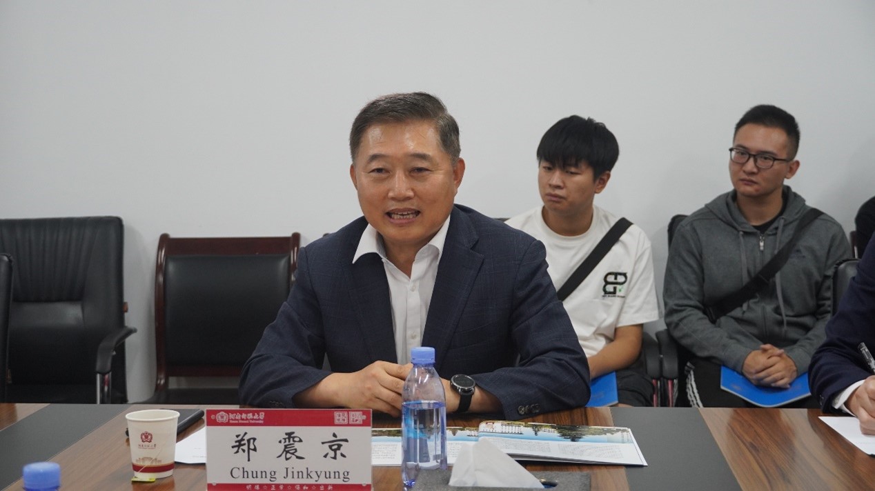 会议伊始,魏雷东对信韩大学郑震京一行到访表示欢迎,向与会嘉宾介绍社会事业学院专业开设、学科建设等情况,特别指出此次会议是对上半年访问信韩大学的延续和双方交流成果的巩固,期待在本次会议中与信韩大学进一步围绕双方后续合作展开深入交流。
