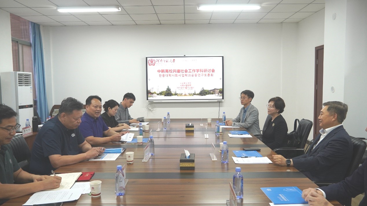 9月22日下午,社会事业学院于崇智楼210会议室举行中韩高校共建社会工作学科研讨会,信韩大学业务副校长郑震京、研究生院院长林爱莲、国际处处长李大成、学科长金永吉,社会事业学院党委书记张向东、副院长海龙、副院长宋树伟,社会工作系教师及2023级MSW研究生参加本次会议,会议由社会事业学院院长魏雷东主持。