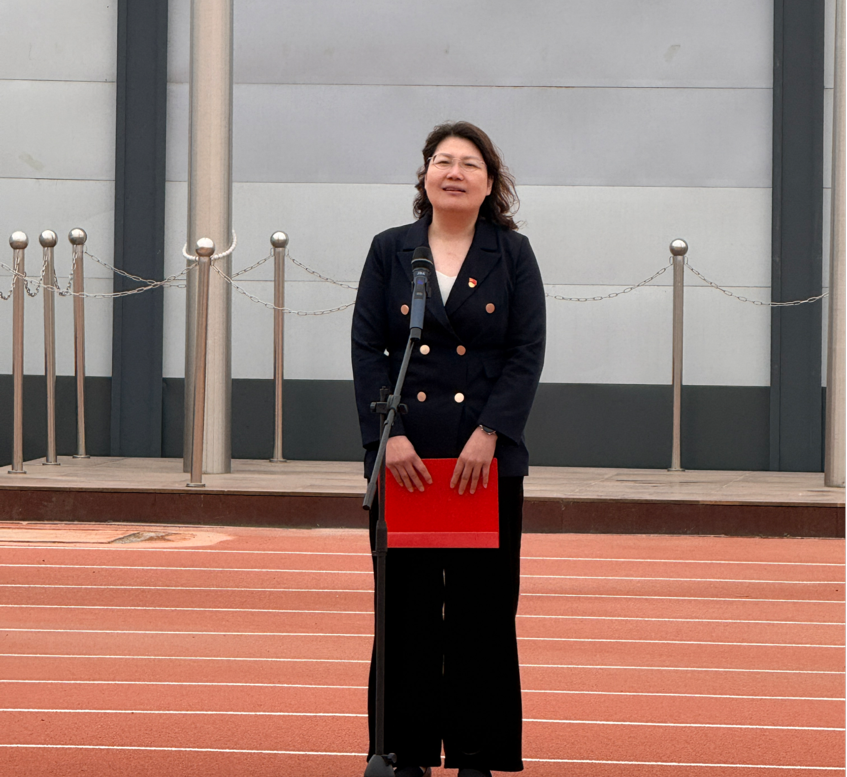 随后,国际教育学院院长赵扬以“国旗下的思政课”为契机,为在场学子深情授课。她从“五星红旗为什么这样红”的精神溯源,到新时代青年的责任担当与成长路径,勉励全体同学坚定理想、明晰使命,将个人追求融入国家发展大局,以勤学笃行夯实根基,以求是拓新勇攀高峰,在青春赛道上奋力奔跑,用真才实学践行报国初心。