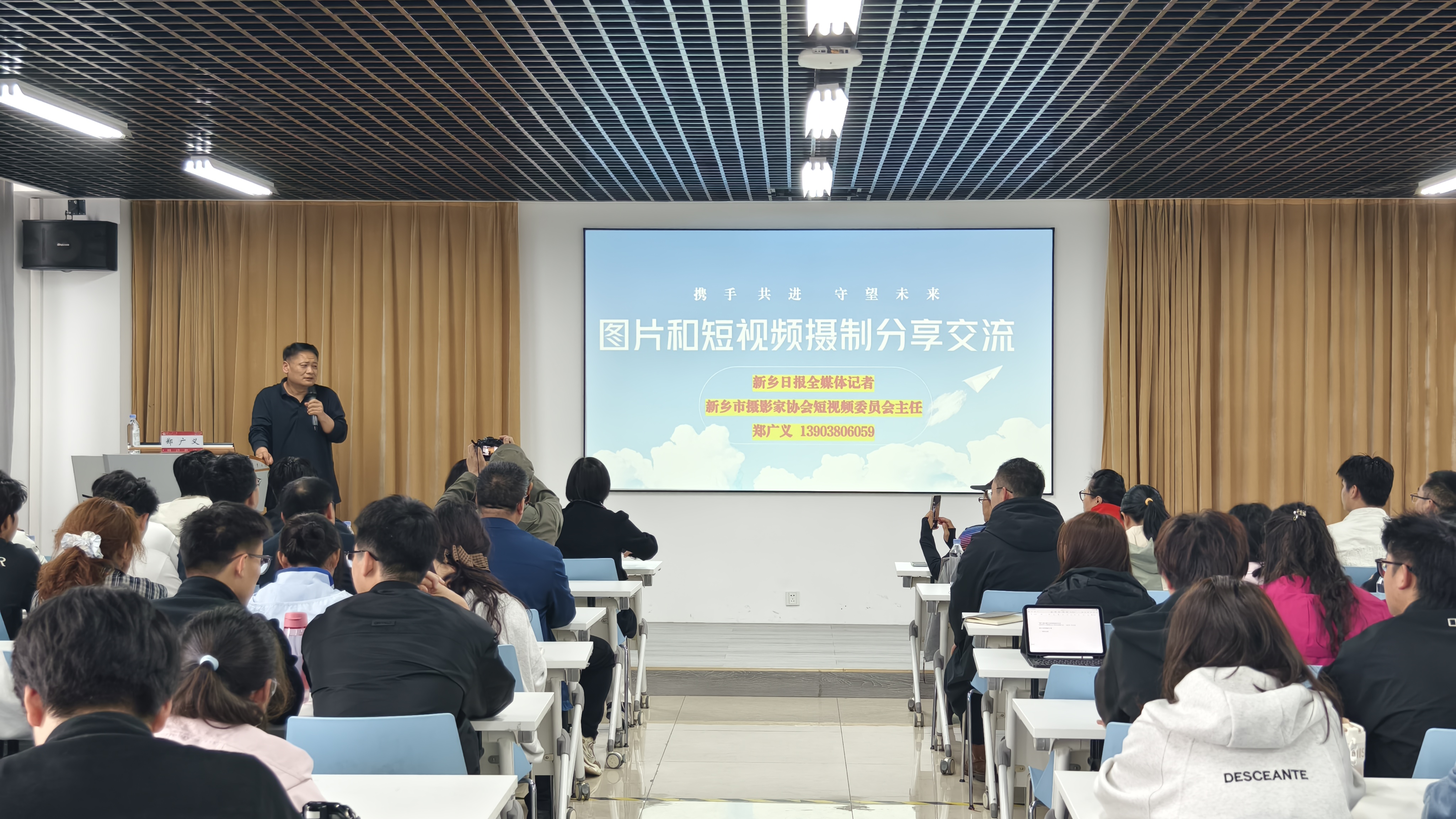 为顺应融媒体时代发展趋势,提升师生新媒体影像创作能力3月26日下午,历史文化学院工会、材料科学与工程学院工会在东区实训楼1113室联合举办“镜界・春语”摄影与短视频技能培训沙龙。活动特邀新乡日报全媒体记者、新乡市摄影家协会短视频委员会主任郑广义担任主讲嘉宾,两个学院百余名师生参加此次培训活动。