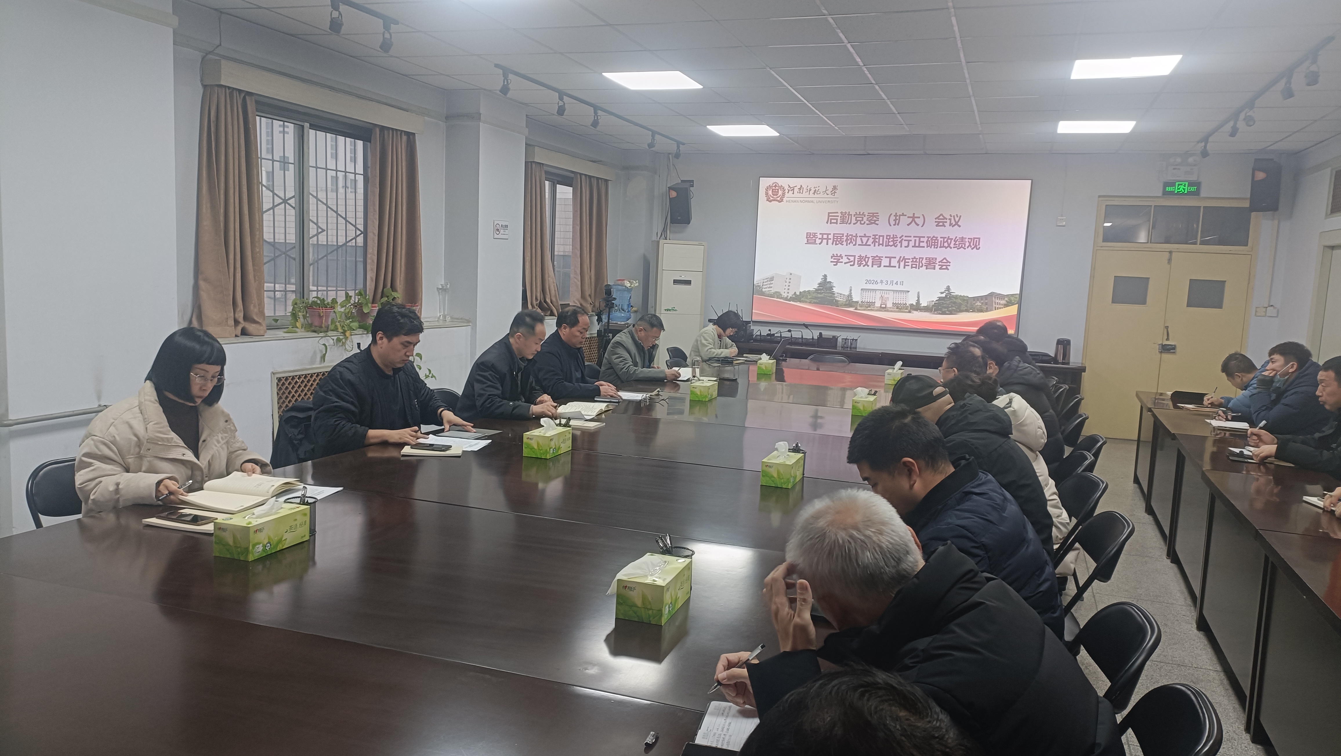 3月4日下午,后勤党委(扩大)会议暨开展树立和践行正确政绩观学习教育工作部署会在文渊楼529会议室召开,深入学习贯彻习近平总书记关于树立和践行正确政绩观的重要论述,落实学校关于在全校党员中开展树立和践行正确政绩观学习教育的工作要求,安排部署本单位有关学习教育工作。后勤服务保障部班子成员、全体科级干部参加会议。会议由后勤服务保障部部长宋卫平主持。