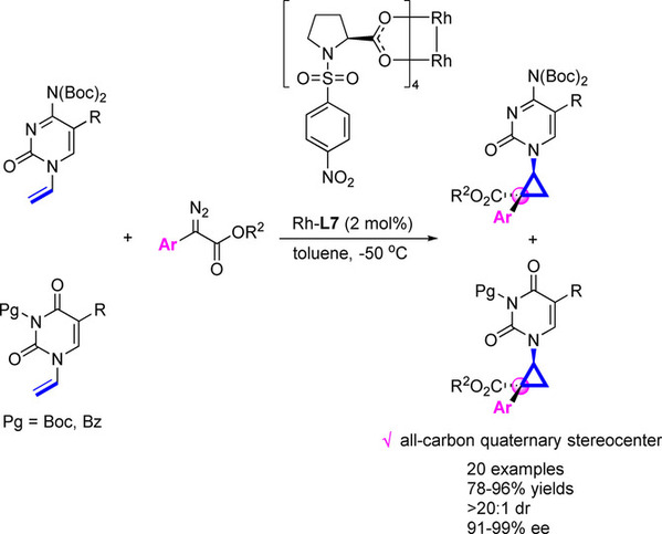 6. Hai-Xia Wang, Fang-Juan Guan, Ming-Sheng Xie*, Gui-Rong Qu, and Hai-Ming Guo*, Construction of All‐Carbon Quaternary Stereocenters via Asymmetric Cyclopropanations: Synthesis of Chiral Carbocyclic Pyrimidine Nucleosides, Adv. Synth. Catal. 2018, 360(11), 2233-2238.