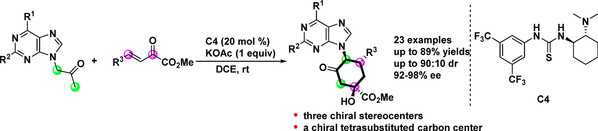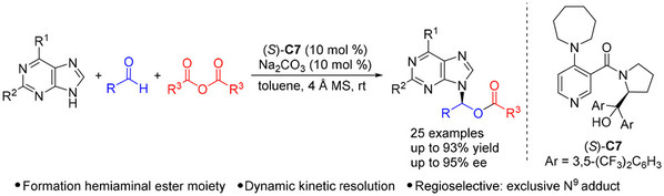 11. Ke-Xin Huang, Ming-Sheng Xie, Qi-Ying Zhang, Hong-Ying Niu,* Gui-Rong Qu,Hai-Ming Guo,* Synthesis of Chiral Six-Membered Carbocyclic Purine Nucleosides via Organocatalytic Enantioselective [3+3] Annulation, Org. Lett., 2018, 20, 5398–5401.
