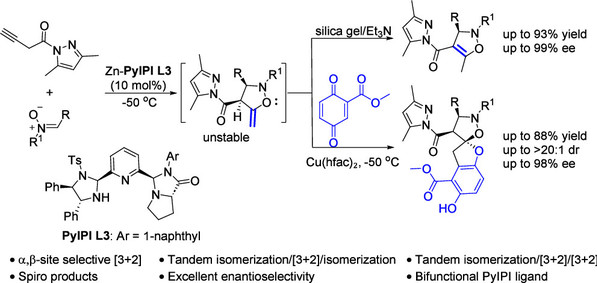 19. Jia-Yi Liu, Xin-Yi Chen, Ming-Sheng Xie*, Hai-Ming Guo*, Zn(II)-Catalyzed Isomerization/Asymmetric [3+2] Cycloaddition of 3-Butynoyl Pyrazole with Nitrones: Subsequent Exocyclic Olefin Isomerization and Capture, Organic Letters, 2025, 27, 14029-14034.