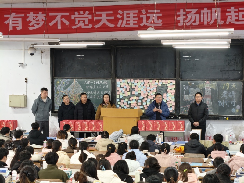 活动伊始,学院党委书记李浩代表学院向心怀学术理想、勇担时代使命的考研学子致以诚挚问候和殷切期望。他提到,学院的考研学子不仅是追梦者,更是未来科学研究的探索者与实践者。他鼓励同学们以科学精神为引领,在冲刺阶段扎实掌握专业知识、补齐能力短板,既要保持“精益求精”的钻研态度,也要涵养“沉着冷静”的备考心态,将备考历程视为磨砺意志、提升综合素养的重要阶段,以最优状态迎接研究生考试,努力成长为服务社会、贡献国家的优秀人才。随后,学院领导为每位考研学子送上精心筹备的“暖心礼包”。这份礼包承载着学院对学子身心健康的深切关怀,更蕴含着“逐梦必达、砥砺奋进、未来可期”的美好期许与精神激励,为同学们的冲刺之路注入温暖而坚定的力量。