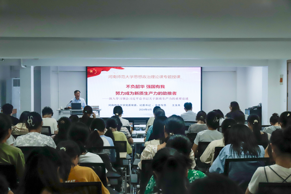 王玉良以《不负韶华 强国有我 努力成为新质生产力的助推者》为主题,从世界新一轮科技革命和产业变革及我国发展方式的转变出发,系统介绍了提出新质生产力的背景、新质生产力的提出过程,讲解了新质生产力的基本概念、基本内涵和核心标志;以加强科技创新,培育发展新质生产力的新动能入手,详细阐述了怎样发展新质生产力;结合新时代党和国家对青年学子提出的新要求,重点阐述了青年学子如何成为新质生产力的助推者。
