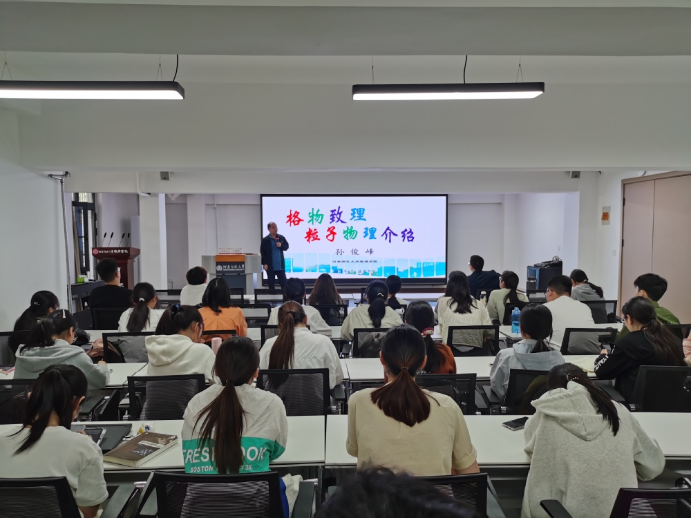 4月22日,应俊甫书院邀请,河南师范大学物理学院孙俊峰教授做客“攀峰讲坛”,在书院111教室作题为“格物致理—粒子物理探索”的专题讲座。书院2023级、2024级60余人参加了报告会,报告会由俊甫书院副院长谢明胜主持。