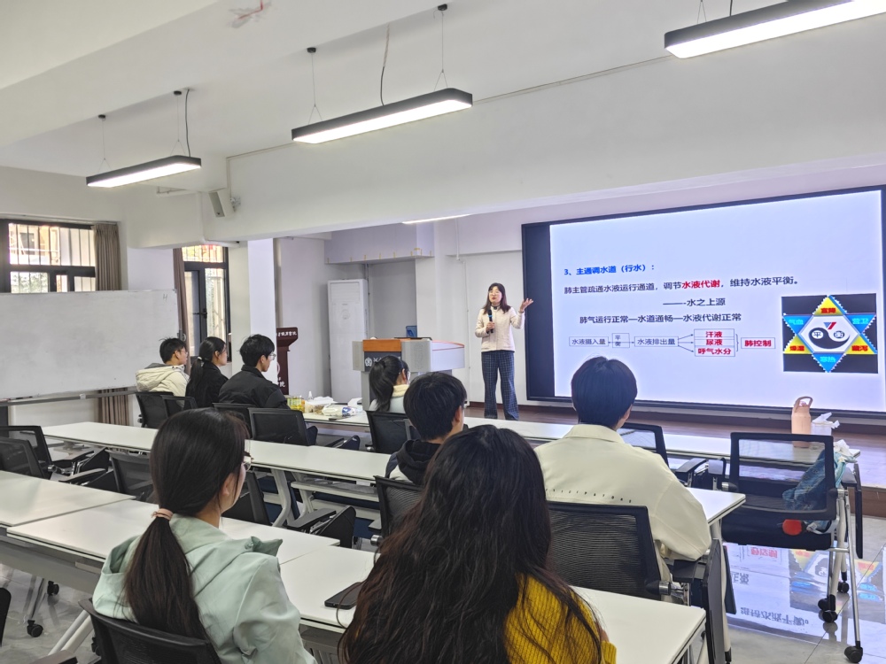 讲座深度融合中医经典理论与生活实践,杨老师以《黄帝内经》中“早卧早起,使志安宁”为依据,阐释秋季收敛养神的重要性,并巧妙运用“肺主行水”等中医原理,帮助师生理解身体与季节的呼应关系,增强自我调理能力。