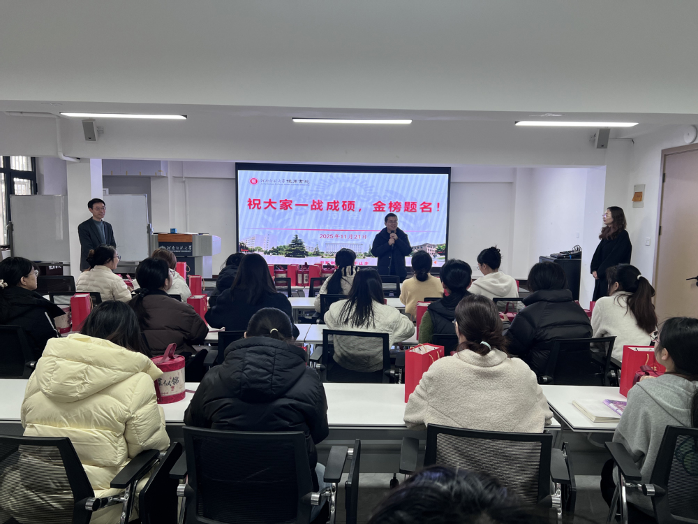 为坚定考研学子信念,缓解备考压力,传递书院关怀与温暖,11月21日上午,俊甫书院在东十“一站式”学生社区111教室举办2026届考研学生慰问活动。书院相关领导老师及2026届备战考研的学生参加了本次活动。