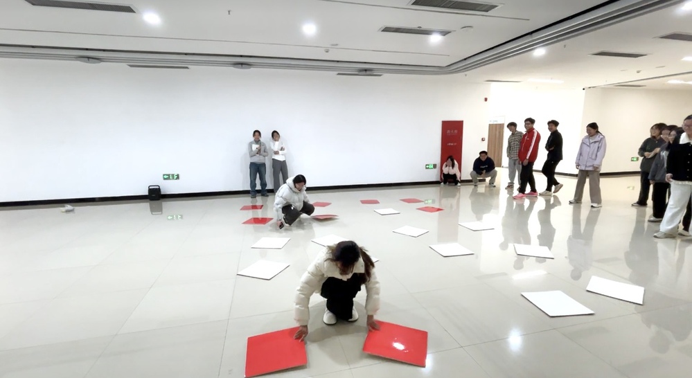 活动现场气氛活跃,参赛学生在轻松愉快的氛围中展现出蓬勃朝气与团队精神。在旱地冰壶项目中,队员们冷静布局、精准发力,在策略配合中锻炼理性思维与情绪调控能力;“非黑即白”环节注重反应力与默契配合,快速翻转的泡沫板不仅考验身体协调性,也促进成员间的即时沟通与信任建立;蒙眼互打项目在欢声笑语中强化了指令理解与团队协作,引导学生学会在不确定环境中保持冷静与互信;套圈比赛则通过专注投掷的过程,帮助学生提升耐心与心理稳定性。