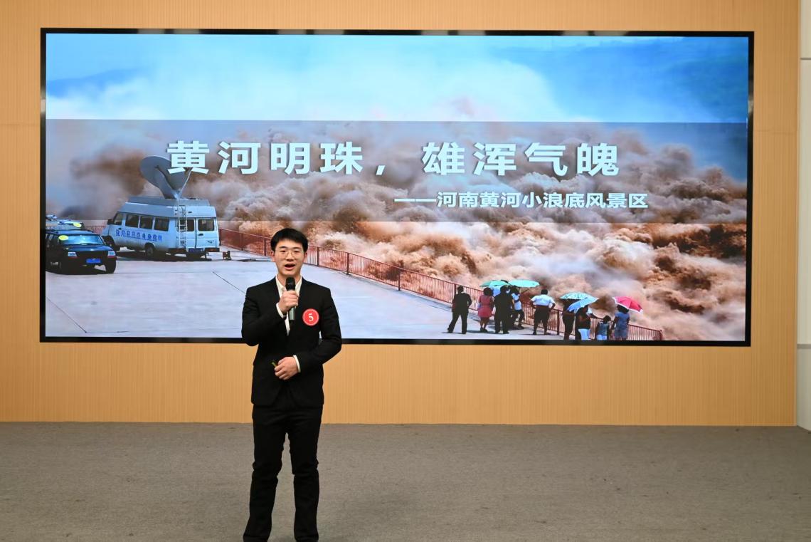 大赛采用初赛—决赛赛制,经过严格选拔,共有九名选手进入决赛。决赛设置笔试—英语介绍—普通话讲解—才艺展示四个环节,全面考察选手的综合素质。赛场上,选手们自信沉稳,意气风发,PPT制作精致美观,他们以流畅的英文进行自我介绍,并运用生动的语言和扎实的知识储备对河南5A级景区展开讲解。从“龙门石窟石刻纹路里的盛唐”解读历史底蕴,到借“红旗渠的修建历程”诠释奋斗精神,选手们通过互动问答拉近与观众之间的距离,带领大家沉浸式感受文旅的独特魅力。评委们从导游讲解词的创新与深度、贴合游客体验度、彰显时代特色等方面提出建议。