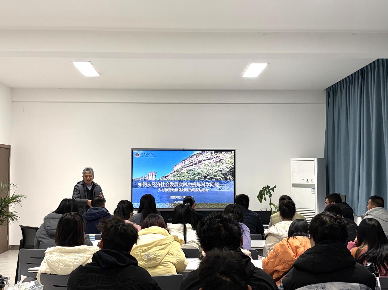 为进一步拓宽师生学术视野、增强科研问题意识、提升科学研究能力,129日上午,应地理与旅游学院邀请,安徽师范大学陆林教授莅临我院作专题讲座,在学院二楼大数据与智慧旅游实验室以《如何从经济社会发展实践中提炼科学问题》为主题,围绕科研选题思维、乡村旅游地演化规律及理论创新路径等内容展开精彩分享会议由学院党委书记冯峰主持学院师生70余人参加交流学习。