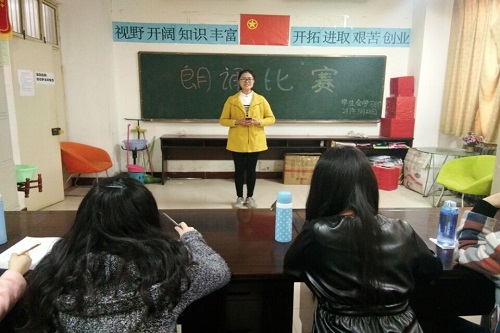 为让广大师生从中国历代名家名篇中提炼思想精华和道德精髓,并赋予其时代新内涵,从中树立正确的世界观、人生观、价值观、荣辱观,真正的做到让中华优秀传统文化成为涵养社会主义核心价值观的重要源泉,2017年3月21日至22日中午,数学与信息科学学院在本院学生会办公室举办了“经典照亮人生”朗诵比赛初赛。