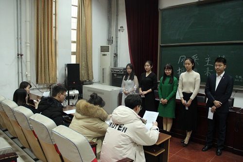 比赛秉承展现文化内涵、智慧才华与整体气质并重的原则,经过初赛、复赛的层层选拔,共有五位选手脱颖而出,跻身决赛。在决赛过程中,各位参赛选手准备充分,从容淡定,张弛有度,充满自信。在短短五分钟的时间中,选手将自身的主持功底与个人特色充分展示出来。赛前,每位选手随机抽签决定顺序,并抽取一段主持词,比赛在考验选手主持功底的同时,也考验了其随机应变的能力。其中一号选手刘昊声音浑厚,慷慨激昂,飞扬着自信风采;三号选手郭芷洋感情充沛,清韵流淌,给人以亲切之感;四号选手王曼霓仪态端庄,收放自如,可谓腹有诗书气自华。随后,评委对五位参赛选手表示肯定与赞扬,并指出选手要注意讲话时的音调、音量,同时保证声音的穿透力,避免卡壳、读稿、滑音等现象,更应注意自身面部表情与肢体动作,要亲切自然,从容有度,与观众有一定的互动,最重要的是要对主持投以无限热情。选手们纷纷表示受益匪浅。最终,经评委认真讨论,一号选手刘昊、三号选手郭芷洋、四号选手王曼霓以其优异的表现入选主持人小组。