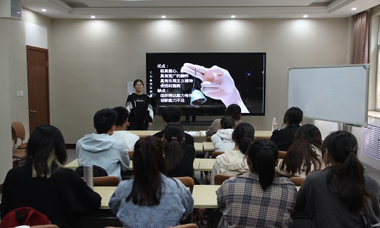 本次比赛由王紫腾主持,共分为PPT展示、职业角色情景模拟、现场答辩三个环节。比赛伊始,主持人向参赛选手详细介绍本次大赛的注意事项以及评分标准。接着,参赛同学分别结合自身特点,以自我认知为基石,以探索职业发展为目标,分享自己的职业目标和就业规划。其中,2020级数学与应用数学专业的杜欣雨同学以古代先贤传道授业以及当代教师教书育人为例,表示自己立志要成为一名有责任心的人民教师,她结合PPT深入分析个人的优劣势,为自身发展制定长期计划,为早日成为一名合格教师做准备。在职业角色模拟环节,选手们以所规划职业者的身份,将个人理解充分表现出来,深入体会在未来职场中所要面对的真实场景。紧接着,在答辩环节中,面对评委的问题,选手们随机应变,回答条理分明,逻辑清晰,展现出青年学子特有的灵活机敏才能。随后,评委们从选手的语言表达、自我认知、职业分析、生涯计划能力等方面对各位选手进行综合评分。王翊琳,杜欣雨,张妙雨同学的突出表现获得了评委们的一致好评,成功推入校级决赛。最后,团委负责人高岩锋老师对同学们做出殷切希望:大学生是青年群体的中坚力量,作为社会主义事业的建设者和接班人,青年学子要正确认知自我、认识社会、理清未来,将个人发展与国家命运紧密联系,合理规划人生蓝图。