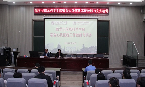 为进一步增强宿舍心灵使者的责任意识,提高其及时发现心理危机、妥善应对心理问题的能力,2023年5月28日上午,数学与信息科学学院“宿舍心灵使者工作技能与实务培训”在学院报告厅举行。本次活动由河南师范大学党委学工部副部长周社刚担任主讲嘉宾,数学与信息科学学院党委副书记吴耀武、全体专职辅导员出席培训会,2021级、2022级全体宿舍心灵使者参加。