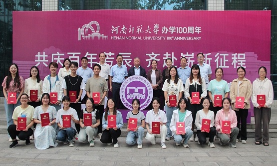 王岩宣读《河南师范大学8413、8414励志奖学金管理办法》和获奖学生名单,学生在主持人的组织下有序上台领奖,并与领导老师、校友代表合影留念。受助学生代表康明妍表示,今后会戒骄戒躁,始终保持对未知问题的探索欲、对社会实践的好奇心和对专业领域的研究热情,潜心求学,不负青春。