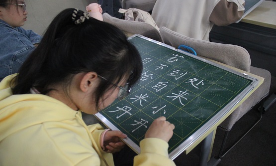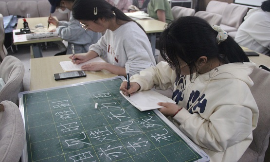 本次活动包括粉笔字、钢笔字、毛笔字三种书写技能比赛。比赛伊始,毛悦梅提出“字如其人,人亦如字”,强调汉字书写规范的重要性,提倡日常要规范写字,注重坚持练习书法,并预祝选手们取得优异成绩。比赛过程中,选手们围绕中华传统诗词、社会主义核心价值观、校风校训等内容精心构思布局,认真完成作品。选手们聚精会神,沉着冷静,提笔自信泰然,落笔行云流水,字里行间展现出师范生的扎实基本素养。硬笔字书写流畅,苍劲隽美;粉笔字工整清秀,规范整齐;毛笔字笔酣墨饱,潇洒飘逸。高岩锋总结发言,书法练习贵在坚持,学院将持续为大家提供物质保障、专业指导和练习平台,在切磋技艺中共同提高。最终,苗玉琪等14名同学被推入校赛。
