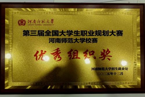 自第三届全国大学生职业规划大赛启动以来,数学与统计学院(密码学院)高度重视、提前谋划,从院赛选拔到校赛备战全程扎实推进。12月27日,该赛事河南师范大学校赛决赛在实训楼五楼圆满落幕,我院凭借充分的前期筹备、周密的赛事组织及选手的亮眼表现,成功斩获“优秀组织奖”。