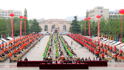 4月26日上午,校党委学工部、学生处主办,体育学院承办的校第二十二届大学生基本技能竞赛开幕式暨“三笔字”大赛在图书馆前广场举行。校党委书记郑邦山、副书记黑建敏、副校长李雪山、体育学院党委书记刘献国、副书记岳贤锋、竞赛组委会领导小组全体成员、各学院团委书记、630名参赛选手及我院450名志愿者、工作人员参加了开幕式。开幕式由校党委学工部部长、学生处处长张向战主持。