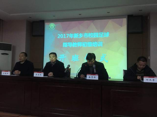 11月20日上午,2017年新乡市中小学校足球教练员培训班开班仪式在我校体育学院会议室举行。我院党委书记岳贤锋、新乡市体育局体卫艺科科长梁庆岭出席会议并讲话。新乡市校园足球工作组组长何长奇、培训班讲师团、参训学员100余人出席会议。会议由关朝阳副院长主持。