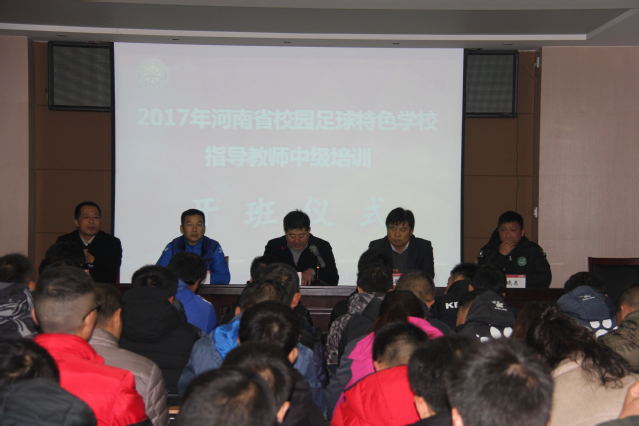 11月22日上午,2017年河南省校园足球特色学校指导教师中级培训班开班仪式在我校体育学院会议室举行。河南省教育厅校足办培训部副部长陈玉、体育学院院长刘献国出席会议并讲话。体育学院党委书记岳贤锋、河南省教育厅校足办培训部左晓东、本次培训团讲师、参训学员、体育学院有关老师80余人参加了会议。会议由关朝阳副院长主持。
