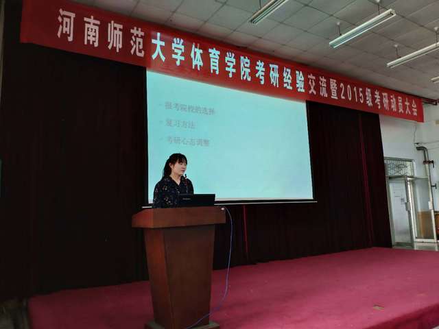 努力拼搏,放飞考研梦想;激情飞扬,彰显青春魅力。5月22日中午12点30分,体育学院在万人餐厅三楼多功能报告厅举行考研经验交流暨2015级考研动员大会。体育学院党委副书记朱庆福、各级辅导员及2015级全体本科生参加会议。会议由学院团委书记董文可主持。