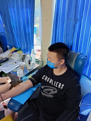 献血现场,暖流涌动,同学们在医护工作人员的指导下,在志愿者的积极协助下,有序地填表、体检、化验、抽血,一步一步井然有序地进行着这一光荣之举,每个人脸上都流露着温情的笑容,现场气氛非常温馨。献血过程中,涌现了不少爱的故事。有的是受高年级学生的影响,本次全寝室一同参加献血;有的是陪同学献血受现场气氛感染也撸起了袖管;有的是回到学校不久的退伍军人;还有不少同学入学前已多次参加无偿献血。被问及参与无偿献血的初衷,2021级运动训练专业学生张鑫旸说道:“义务献血是每个公民应尽的义务,400ml的血对我来说不算多,但对于需要的人来说却是救命的稻草,我们大学生更应该走在奉献的前列,用自己的实际行动帮助有需要的人。”