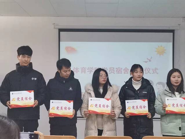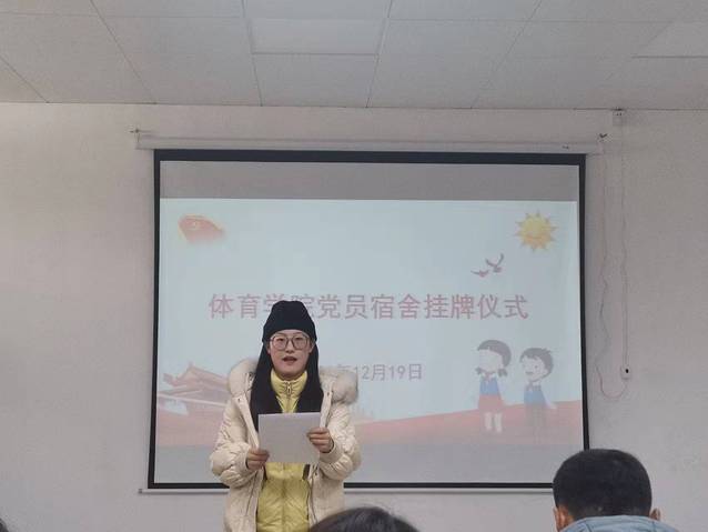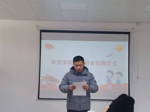 为推进党史学习教育走深走实,发挥学生党员的模范带头作用,12月19日上午,体育学院在小白楼电教室举行体育学院党员宿舍挂牌仪式,体育学院党委书记王允、学生党支部书记、党员宿舍代表共计100余人参加。仪式由体育学院党委副科级组织员石教乐主持。