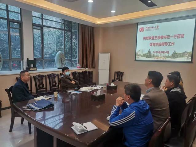 3月16日下午,校党委书记、校长王宗敏在党委办公室主任秦法跃陪同下莅临体育学院视察指导工作。