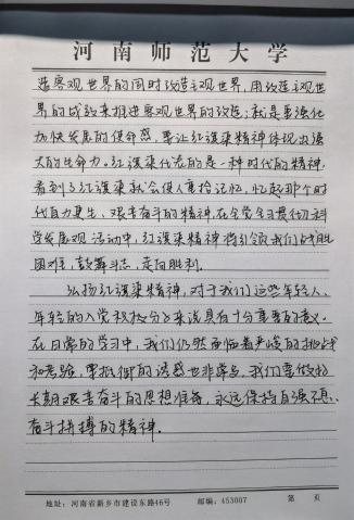专题学习之后,学院师生纷纷撰写学习心得,表达学习和践行红旗渠精神的决心。体操教研室党支部的于益民老师说道:“通过专题学习,我更加了解了共产党员的使命和担当,作为一名年轻的教师党员,我要以红旗渠精神为引领,当好“红色根脉”的守护者、传承者、践行者,以拳拳之心践行体育强国的担当使命。”2022级本科生丁珂写道:“观看了纪录片,让我深刻的了解到红旗渠修建过程的辛酸和林州人民的伟大,作为新时代的大学生,要继续发扬自力更生、艰苦奋斗的精神,传承好红色基因,尽己所能为社会做贡献。”
