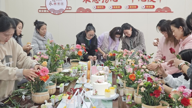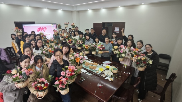 活动中,女教师们精心构思、认真修剪、尽情地发挥创作力,根据不同的色彩和形状,错落有致地将花材搭配在一起,变成了一件件具有艺术感、层次感的精美花艺作品,令人赏心悦目。女教师们看着自己亲手创作的花艺作品,感到满满的成就感与幸福感,脸上都洋溢着浪漫开心的笑容。活动最后大家一起进行了合影留念。