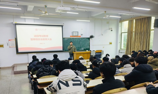 为严肃考风考纪,筑牢诚信根基,增强学生安全意识,保障寒假期间学生身心健康与生命安全,我院于1月14日上午在新554楼203教室召开2024级期末诚信考试暨寒假安全教育大会。2024级辅导员张远航及全体学生共同参会。