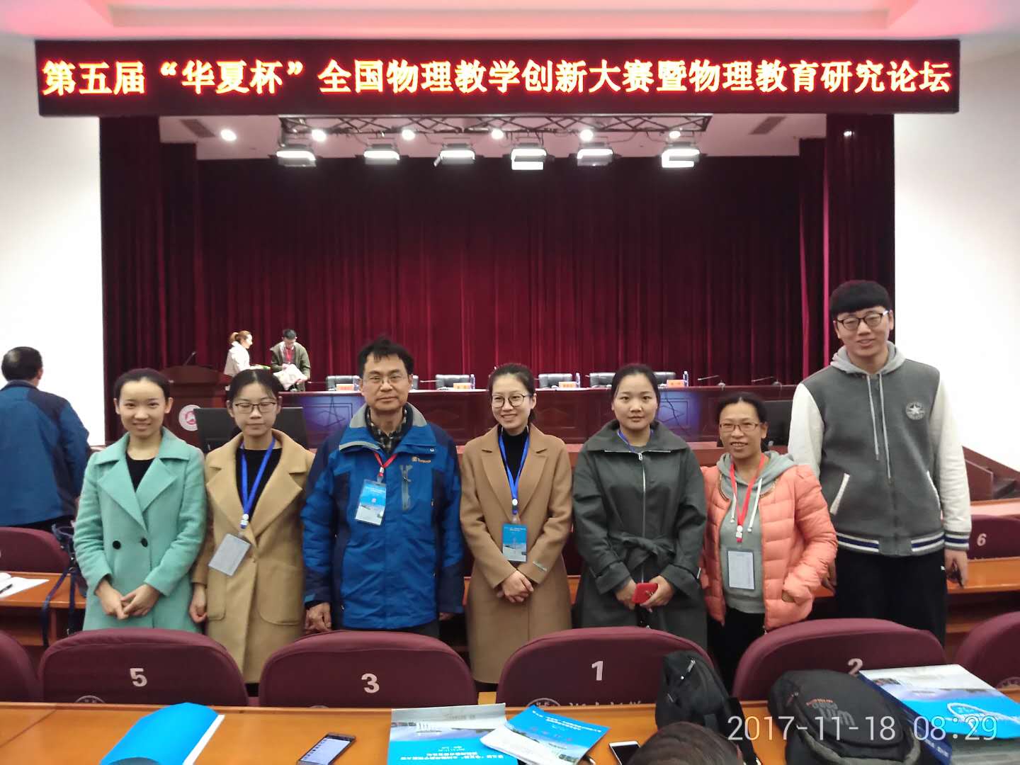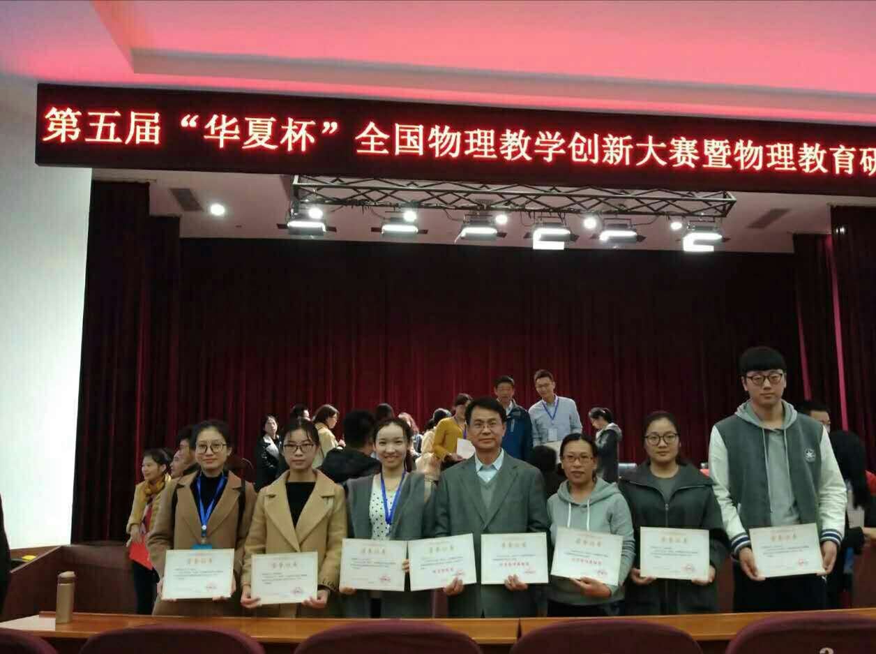 2017年11月17日至19日,第五届“华夏杯”全国物理教学创新大赛暨物理教育研究论坛在湖南师范大学举行。我院本科生参赛并获得佳绩,2014级物理学专业余梦如、董仕达、李荣璟三位同学分别荣获本科组一等奖、二等奖、三等奖。2015级物理学专业冯玉洁荣获本科组二等奖。侯新杰老师、陈运保老师、杜爱慧老师荣获优秀指导老师奖。同时,因我校组织得力、成绩优异,获得“优秀组织奖”。