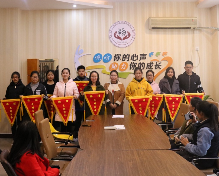 为积极引导学生养成良好的生活习惯,增强学生之间的凝聚力,培养宿舍内和谐的人际关系,11月7日,我院“向阳心声——大学生心理健康加油站”在物理北楼A116举行文明宿舍评选活动颁奖仪式。全院获奖宿舍代表、加油站负责人熊子瑞老师参加了颁奖仪式。