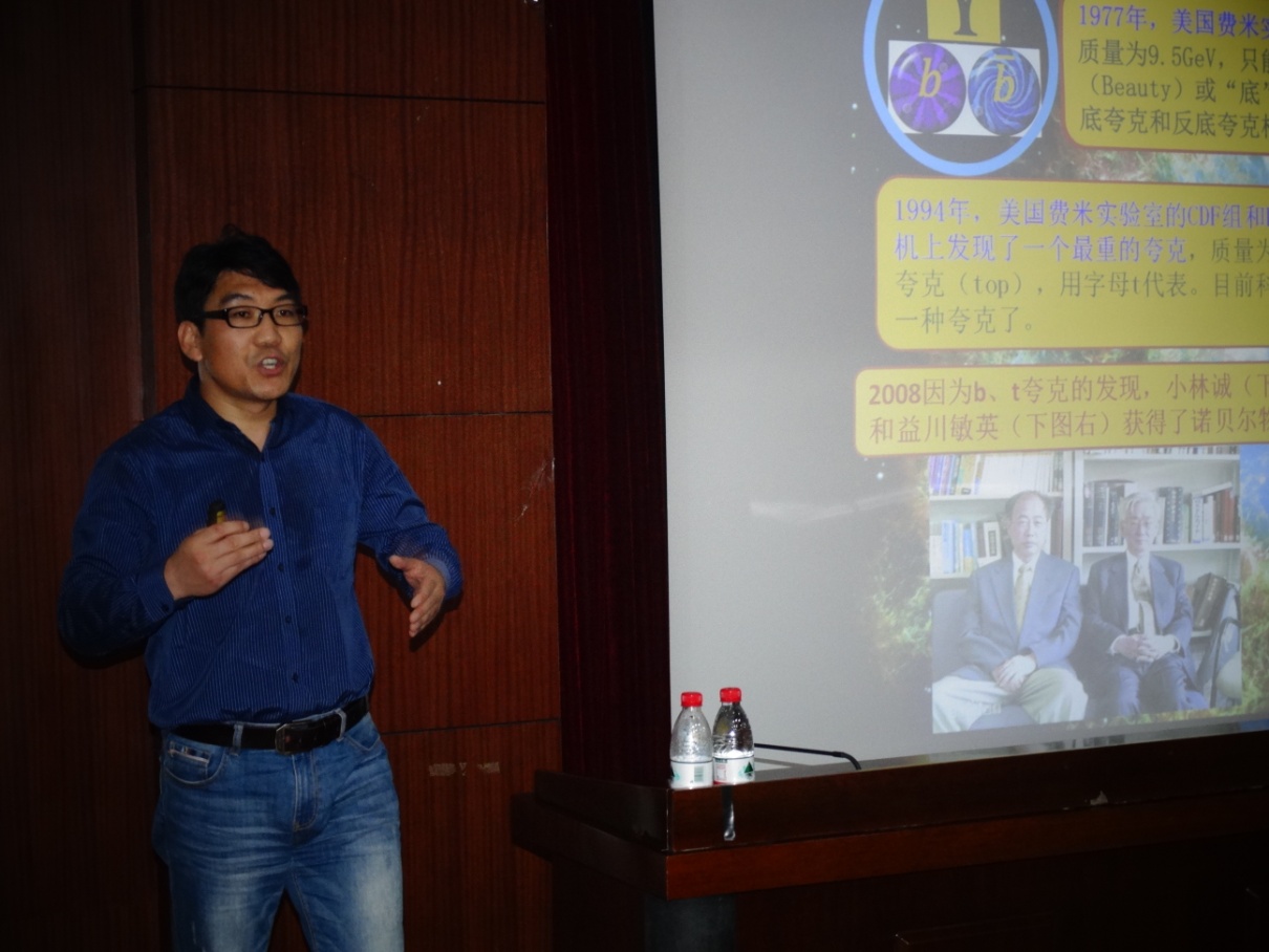王雄飞研究员在报告中介绍了不同时期科学家在物质基本层次探索方面的不断努力,所取得的成果,随着实验和理论的发展,人们对物质结构的认识逐步深入,发展为目前的粒子物理标准模型,以及目前粒子物理实验方面的研究进展等。北京正负电子对撞机是我国在高能物理领域的加速器,基于在陶粲能区获取的世界最大的数据样本,取得了很多具有国际重要影响的成果,王雄飞研究员介绍了自己团队基于北京正负电子对撞机在重子物理方面所做的物理分析以及相关成果。王雄飞研究员演讲生动有趣,报告会现场气氛活跃。在报告最后,王雄飞研究员还介绍了兰州大学物理学院研究生招生和培养方面的情况,王雄飞研究员耐心细致地回答了师生提出的问题。讲座在参会人员的热烈掌声中结束。